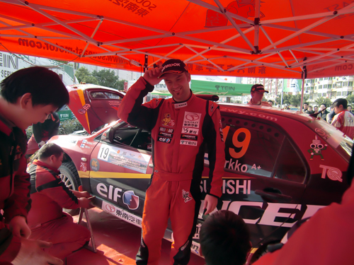 裝備TEIN天御懸架的大衛-辛吉斯,已獲得6連勝的他又迎來了漠和站的比賽。漠河坐落在中國和俄羅斯的邊境,氣溫在零下4℃-8℃之間,雖然連日來持續下雨給林中的賽道更添了幾分泥濘,但是各個車隊還是在精心准備著。賽道是由長賽道和高速賽道形成。TEIN車隊的TYPE Gr.N,是從前回的柏油路面的設計規格調整到沙土跑道的設計規格,較軟的懸架設定在試車時,大衛-辛吉斯興奮的說“偉大”,裝載著TEIN懸架的他,開始了當日的征戰。