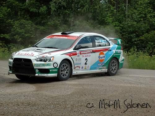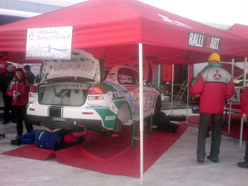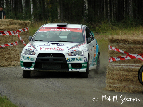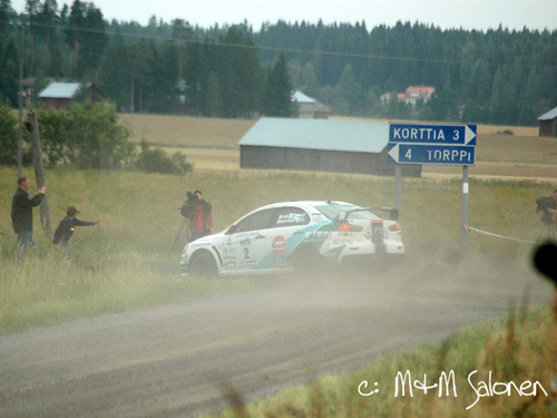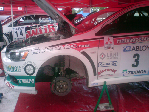 J.Salo選手起跑的發揮令人高興,第1賽段結束時僅以0.5秒差落後于首位的J.Valimaki選手。隊友K.Katajamaki選手,駕駛裝備TEIN TYPE Gr.N懸架的Lancer Evo.IX和首位以0.7秒差位列第3。第2賽段,J.Salo選手出現了齒輪故障,排位落後2位處于第4。K.Katajamaki選手和首位以1.9秒差處于第2,但在第3賽段時賽車衝出賽道,損失了1分鐘以上的時間。J.Salo選手不愧為開幕賽冠軍,以精彩的車技拼命發揮,第3賽段結束時排位第3。對于新車Lancer Evo X,J.Salo選手感覺到在轉彎時轉向不足,TEIN技術師在第3賽段結束後調整了平衡裝置,提高了前輪的抓地力。