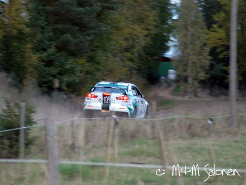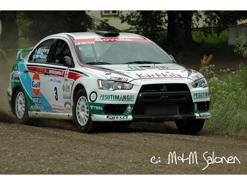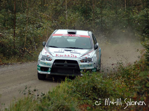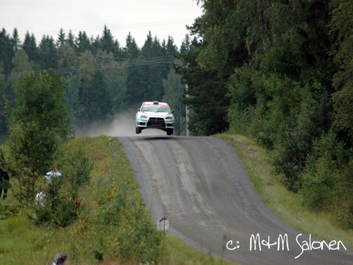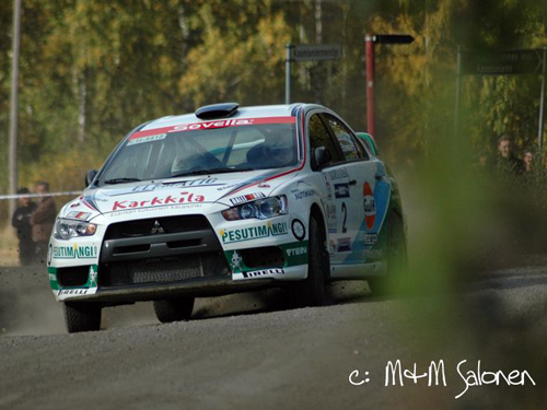 芬蘭汽車拉力錦標賽(英文簡稱FRC)第5站在芬蘭南部的科沃拉市拉開戰幕。J.Salo選手在賽前測試階段對測試的成績非常滿意,他高興地說到︰“盡管賽道複雜,必需連續跳躍落地地面也看不到的高坡賽段,但Lancer Evo X的高度穩定操控性能令人震驚”。對明天的比賽,J.Salo選手充滿信心。